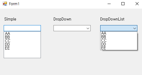 Simple, DropDown, DropDownList 이렇게 3가지가 있다.