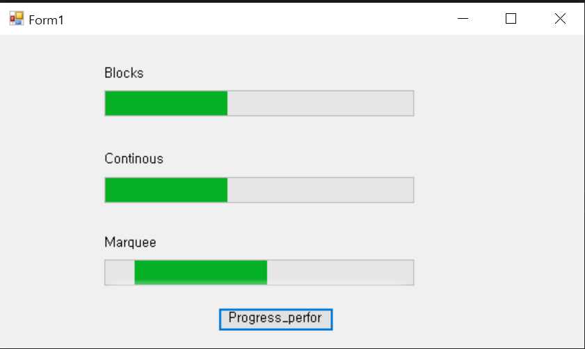 ※ ProgressBar의 Style이 'Marquee'인 경우 진행률이 고정값이 아니기 때문에 PerformSteop()이 작동하지 않는다.