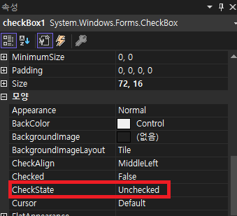 CheckBox는 Checked, Unchecked, Indeterminate 3가지 중 하나의 CheckState속성을 가지고 있다.