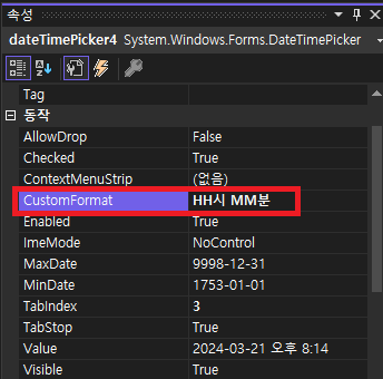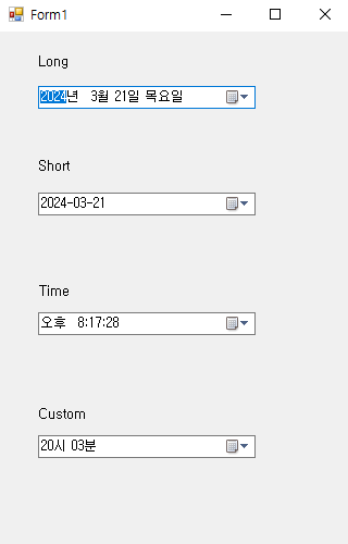 DateTimePicker는 4가지의 포맷이 지원된다.