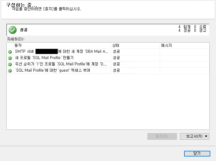 여기서 공개 프로필로 설정하면 데이터베이스 메일을 보낼 수 있는 권한이 있는 게정은 이 프로필을 사용해 메일을 보낼 수 있게 된다.