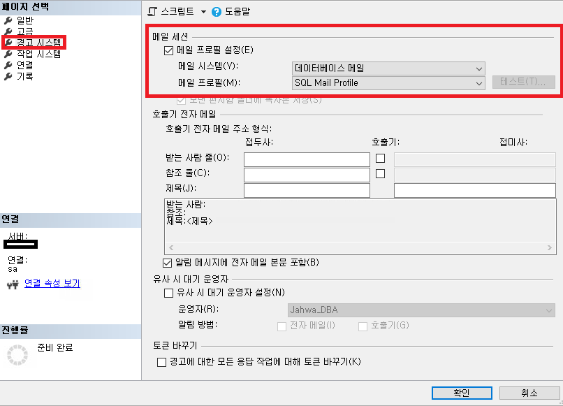 SQL Server 에이전트 서비스가 자동으로 메일을 발송하게 하려면 메일 프로필을 설정해야한다.