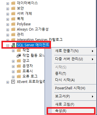 [SQL Server 에이전트(마우스 우클릭) -> 속성]
