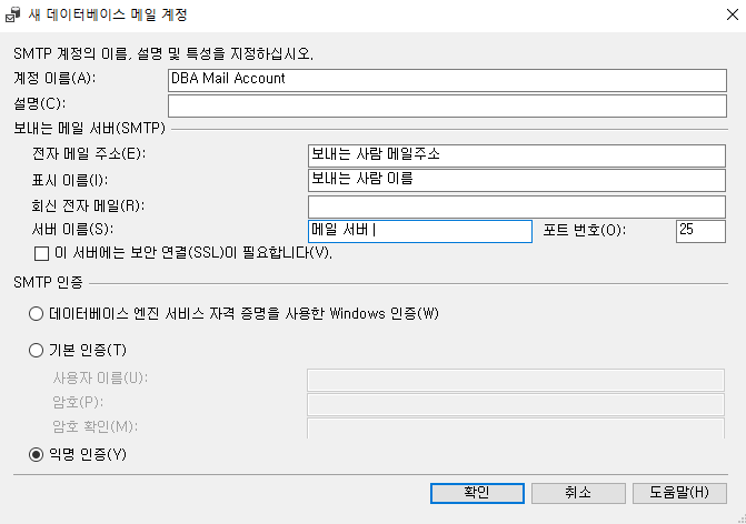 * 서버 이름 : 사용할 SMTP 서버 정보 입력