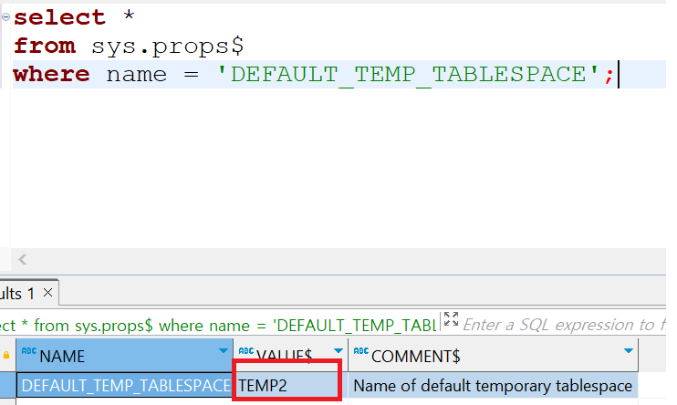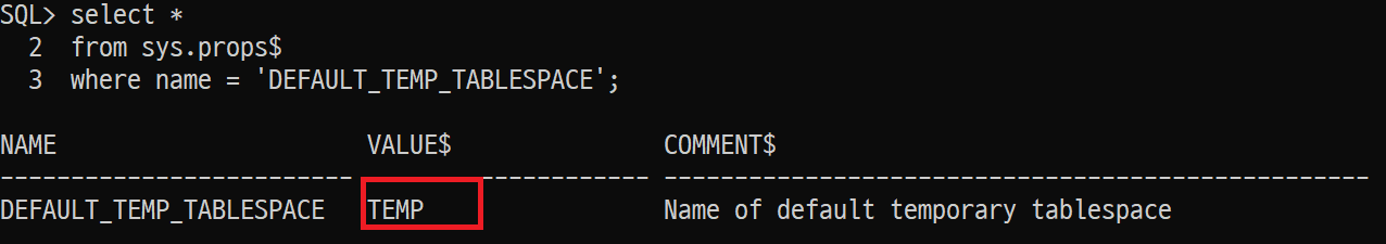 where name = 'DEFAULT_TEMP_TABLESPACE';